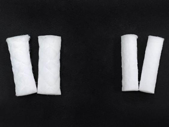 For det andet, fordi flettet bomuldsrulle er mere luftig end almindelig dental bomuld, er absorptionskapaciteten af flettet bomuldsrulle langt større end den almindelige under samme størrelse. Absorptionskapaciteten af dental bomuld er hovedsageligt i to aspekter, vandabsorptionshastighed og vandabsorptionsvolumen. Fordi bomuldsfibrene i flettet bomuldsrulle er lodrette, og bomuldsfibrene i almindelig dentalbomuld er spiralformede, vil vandabsorptionshastigheden af flettet bomuldsrulle være hurtigere, og mere væske vil blive absorberet.