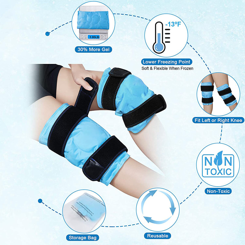 Sammenlignet med andre isposers frysepunkt: -0,4°F er vores genfrysbare ispose -13°F, det nederste frysepunkt kan tåle længere frysetid i stedet for nemt at blive hårdt, så knæisen er fleksibel nok til at konturere vores knæ tæt.