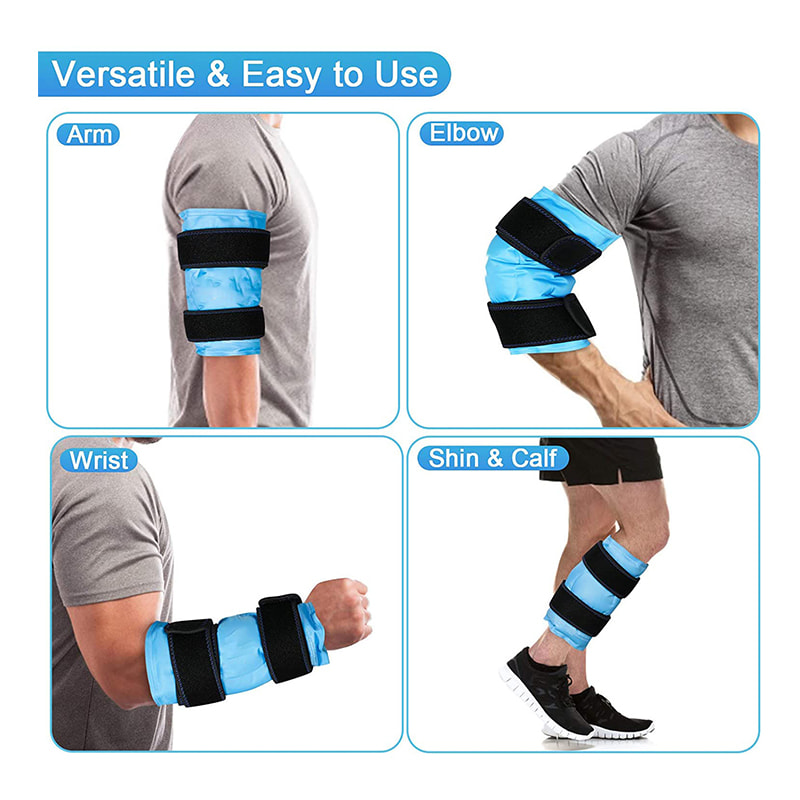 De lange elastiske neoprenstropper (længde: 25,5”) er nemme at fastgøre og bekvemme at anvende koldbehandling med isposen uden at hindre benbevægelser.
