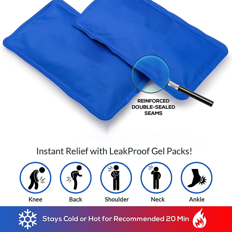 Gelispakken kan bruges på små og mellemstore kropsdele inklusive knæ, ryg, skulder, arm, håndled eller fod. Fleksibel at vikle rundt om som en albue-ispose eller forme med lethed mod ishals- eller ankelskader. Hvert koldt kompres er fleksibelt frosset, så det former sig efter ethvert område af kroppen for effektiv behandling. Derudover bevarer hver lækagesikre gelindsats sin temperatur til hyppig isdannelse.