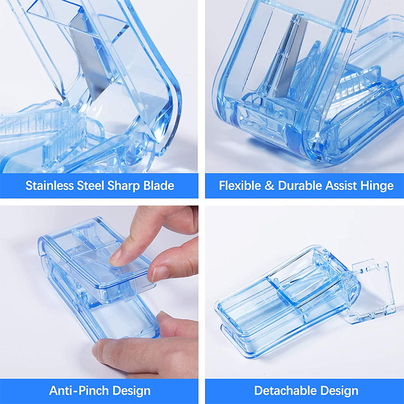 Pilleskæreren er lavet af fødevare PP-materiale, sikkert til medicinsk brug, med miljøvenlige, sunde og lugtfrie egenskaber, harmløse og holdbare.