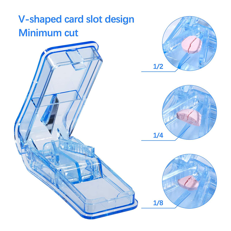 Pilleopdeleren med v-formet design kan indeholde medicin i forskellige størrelser og flere former, piller med et fast greb for nem, præcis skæring.