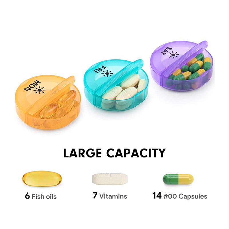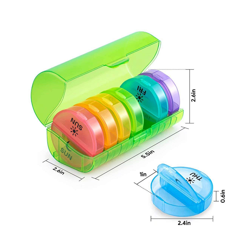7 individuelle daglige æsker med 7 farver giver dig mulighed for at smutte enkelt eller et par dages medicin til at tage, når du er ude.