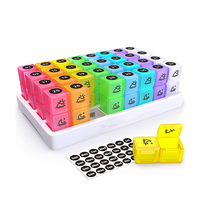 Vores 31-dages månedlige pille-arrangør har 32 nummererede lyse og farverige gennemskinnelige individuelle pilleæsker, som du vil være i stand til at tjekke for at se, om du har taget dine piller for dagen, og på den måde behøver du ikke opbevare flere pilleæsker.