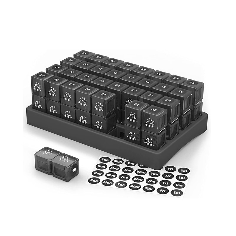 Nem at fylde og passe piller i alle størrelser, så du nemt kan planlægge din am/pm-medicin i op til en hel måned i forvejen.