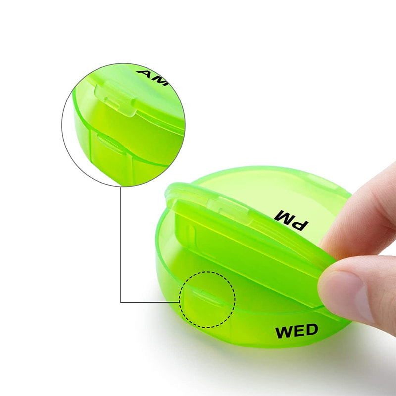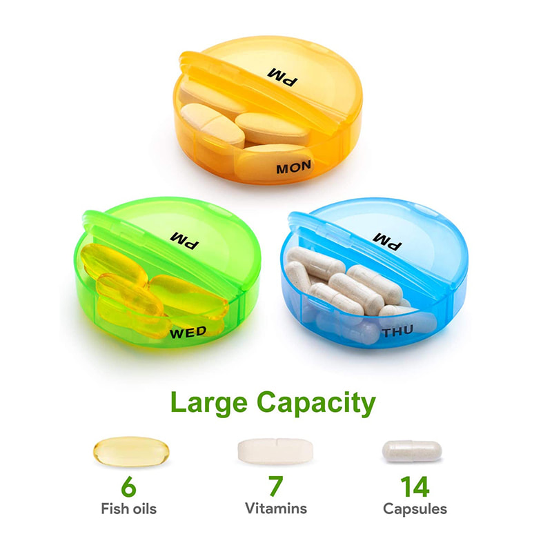 Organizeren til daglig pilleæske er aftagelig og indeholder 7 store rum, hvis størrelse er lige så stor som din håndflade.