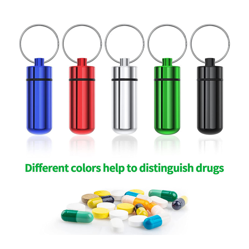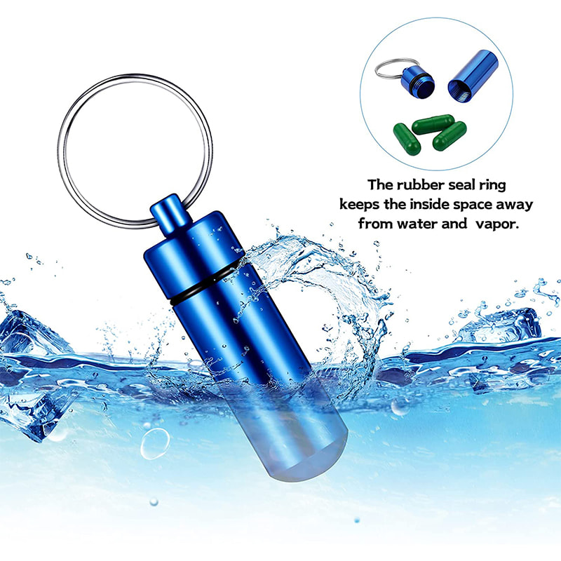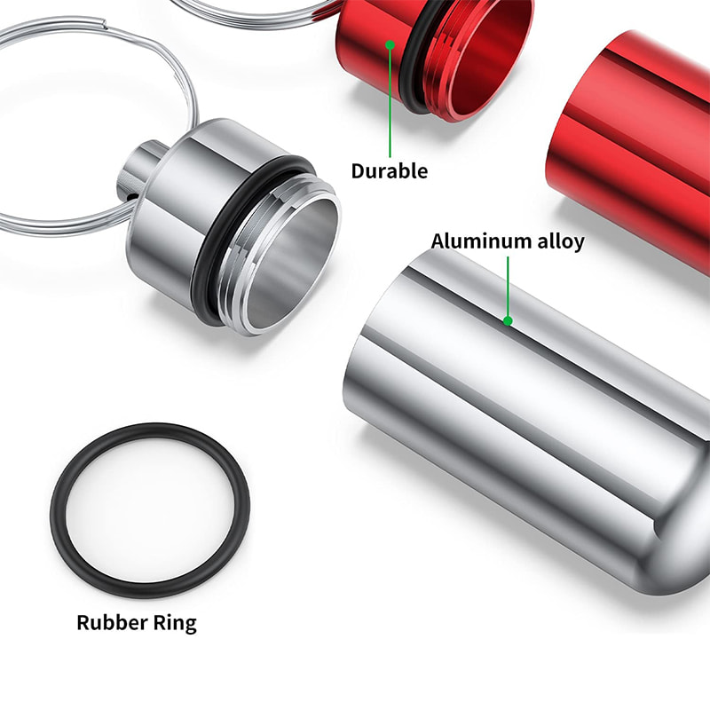 Pilleholderen har en gummi O-ring pakning på skruelåget, der gør den lufttæt og vandtæt nok til at holde dine piller sikkert og tørre inde, når du er på ferie, tur, camping eller enhver udendørs aktivitet.