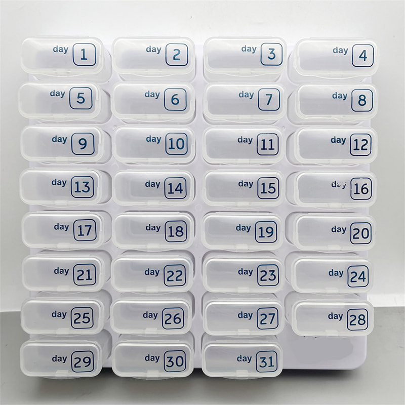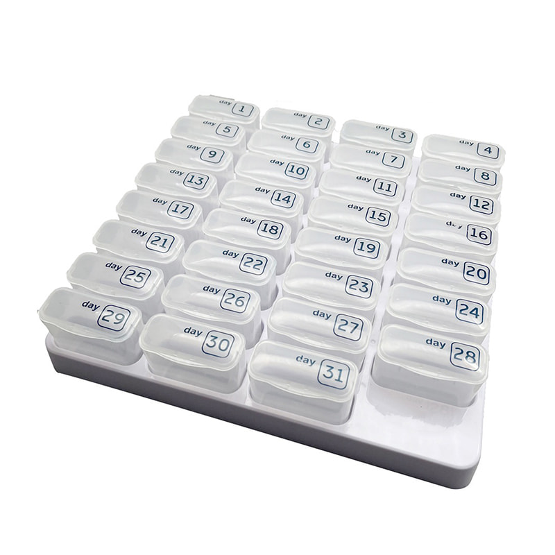 Bælgene er nummererede, så de svarer til dagen i måneden for nem brug, hvilket gør det nemt at huske, hvilken dag og hvilken dosis du er på.