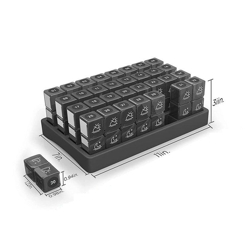 Vores 31-dages månedlige pille-arrangør har 32 nummererede lyse og farverige gennemskinnelige individuelle pilleæsker, som du vil være i stand til at tjekke for at se, om du har taget dine piller for dagen, og på den måde behøver du ikke opbevare flere pilleæsker.