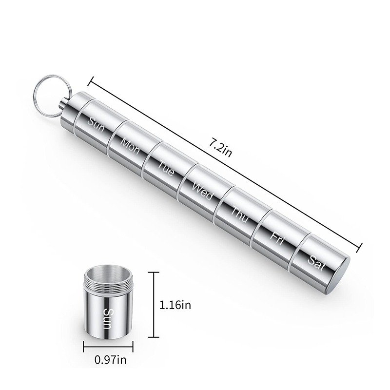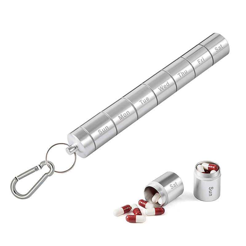 7-dages pilleholderen er lavet af aluminiumslegering, som er let og robust, ikke let at nedbryde og kan tjene dig i lang tid, desuden er de ikke-giftige, kan holde dine piller rene
