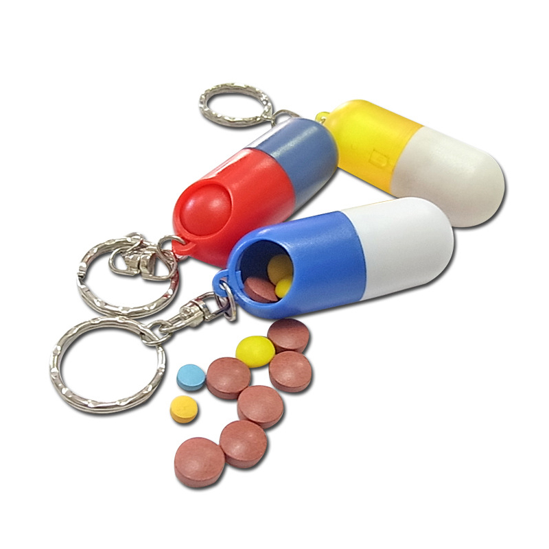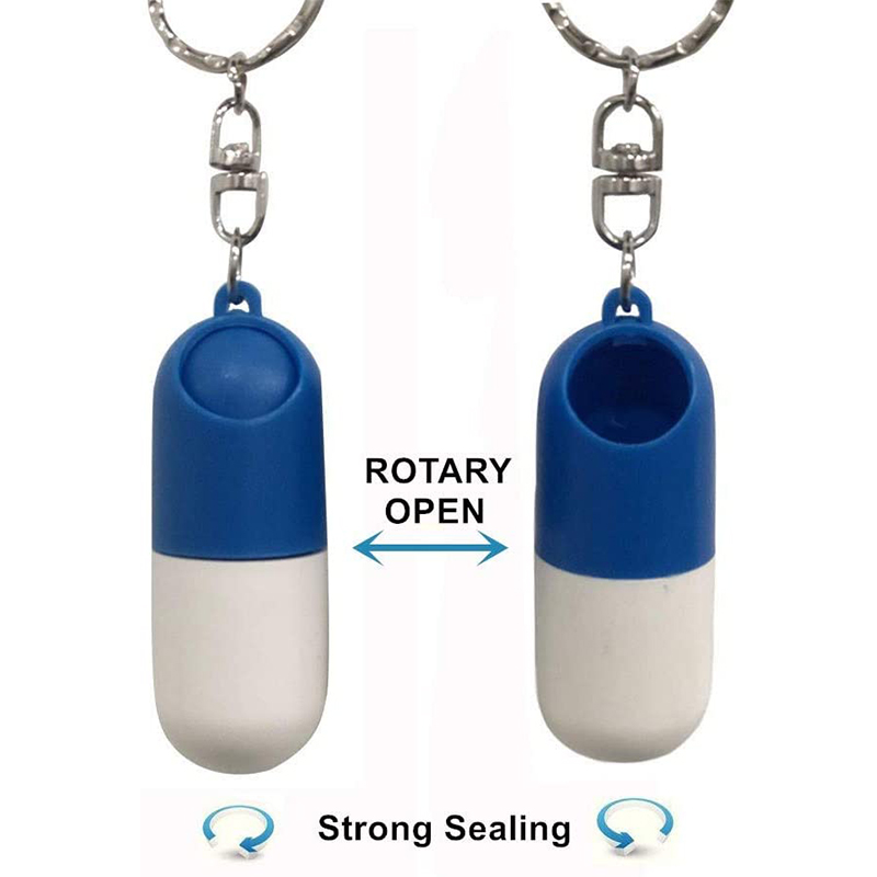 Mini-pilleholderen med nøglering passer i din lomme, pung og taske, kan også nemt klippes til håndtaske, nøglering, bæltestrop, lynlåshåndtag og meget mere.
