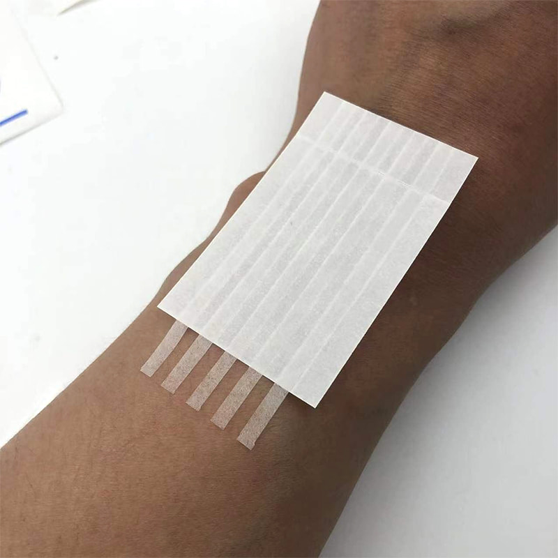 1) Steril, fleksibel sårlukningsstrimmel forhindrer mindre sår i at genåbnes og hjælper med at reducere blødning