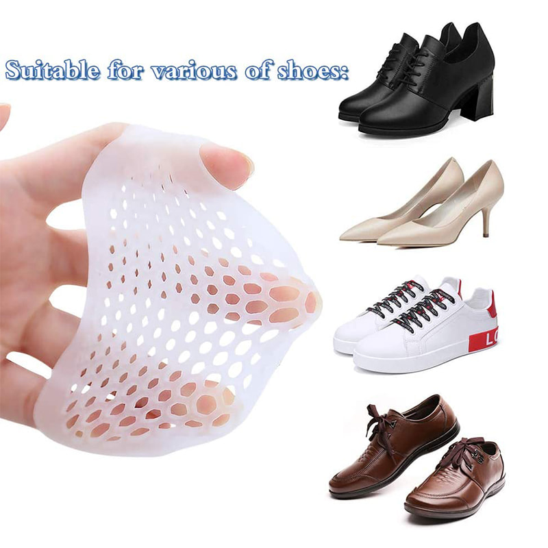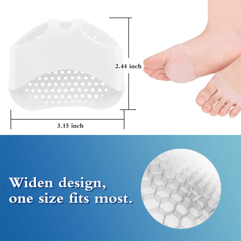 Honeycomb-designet af mellemfodspuden gør produktet med en god åndbar evne, og 3 separate huller gør det muligt for denne trædepude at omslutte dine fødder bedre, skridsikkert design.