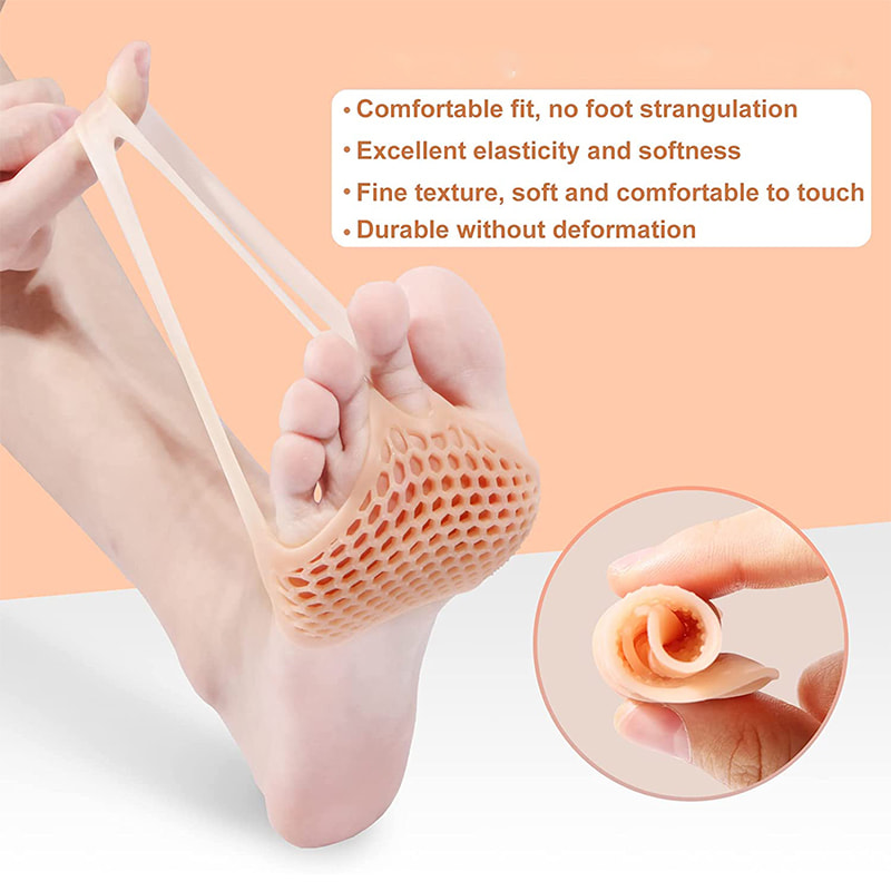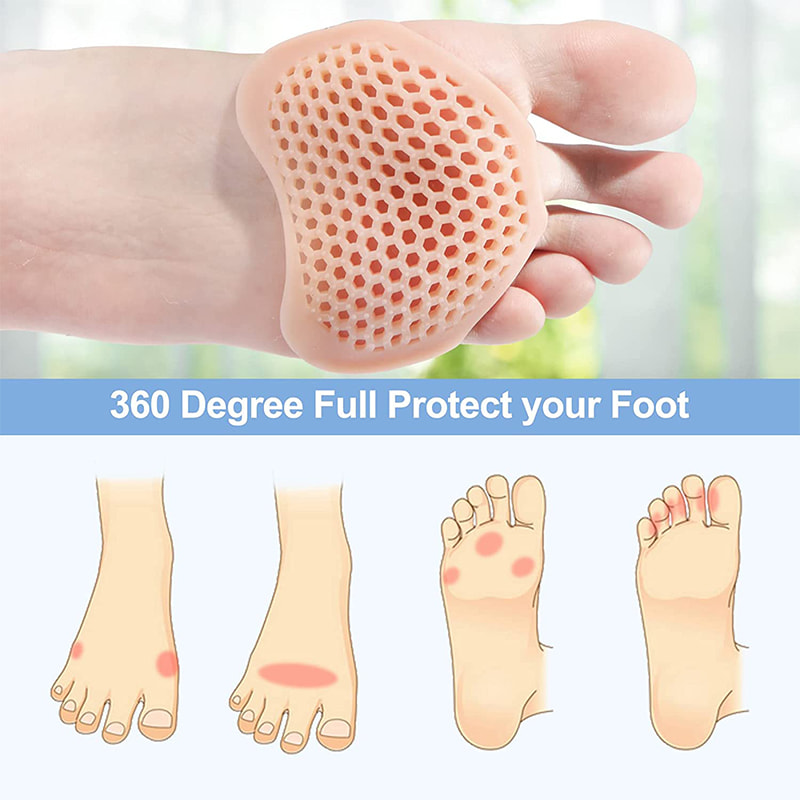 Honeycomb-designet af mellemfodspuden gør produktet med en god åndbar evne, og 3 separate huller gør det muligt for denne trædepude at omslutte dine fødder bedre, skridsikkert design.