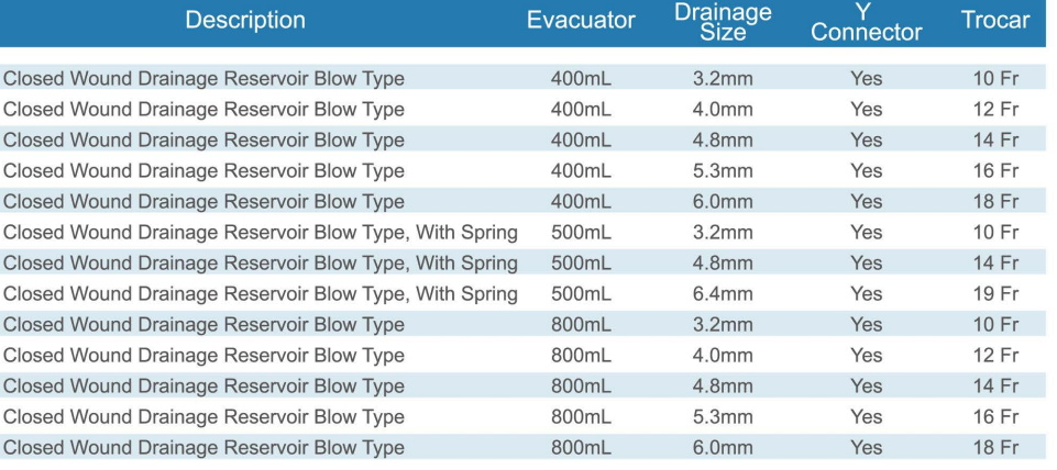 Hjem / Produkter / Kirurgisk sugestyring / Sårdræningssystem / Lukket sårdræningsreservoir (hul type)